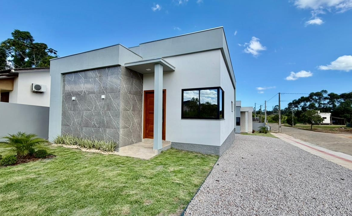 Casa nova com acabamento moderno e localização estratégica no bairro Linha Batista, próxima à Plasson. Uma oportunidade ideal para quem busca o primeiro imóvel com as facilidades do programa Minha Casa Minha Vida.